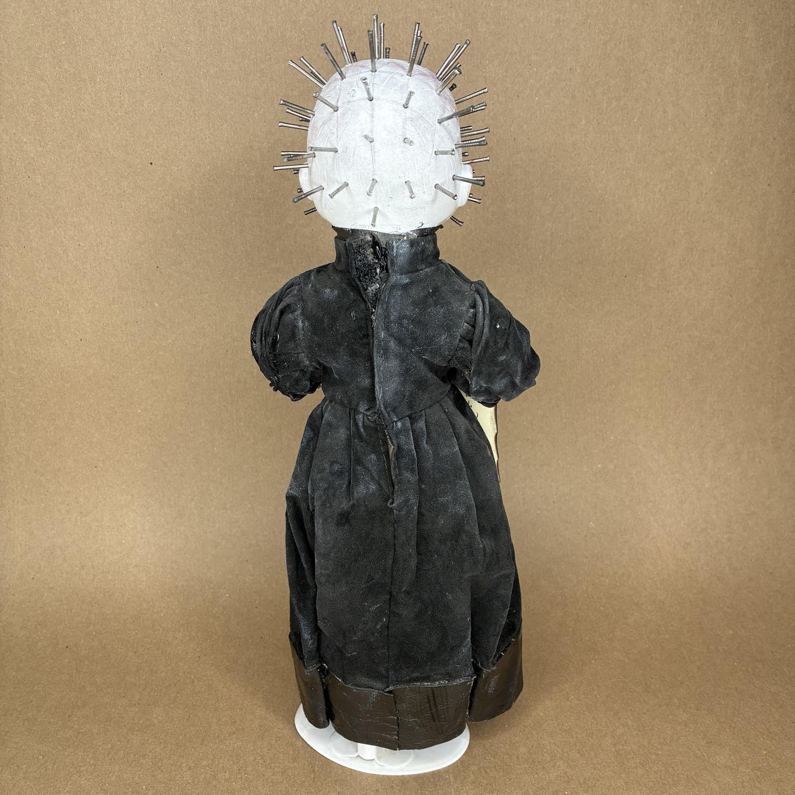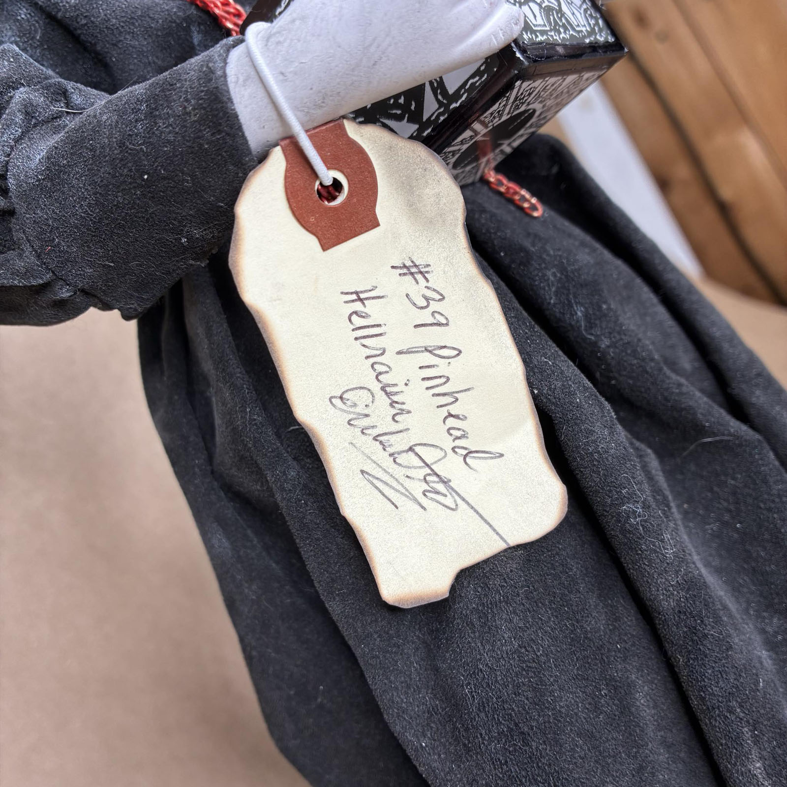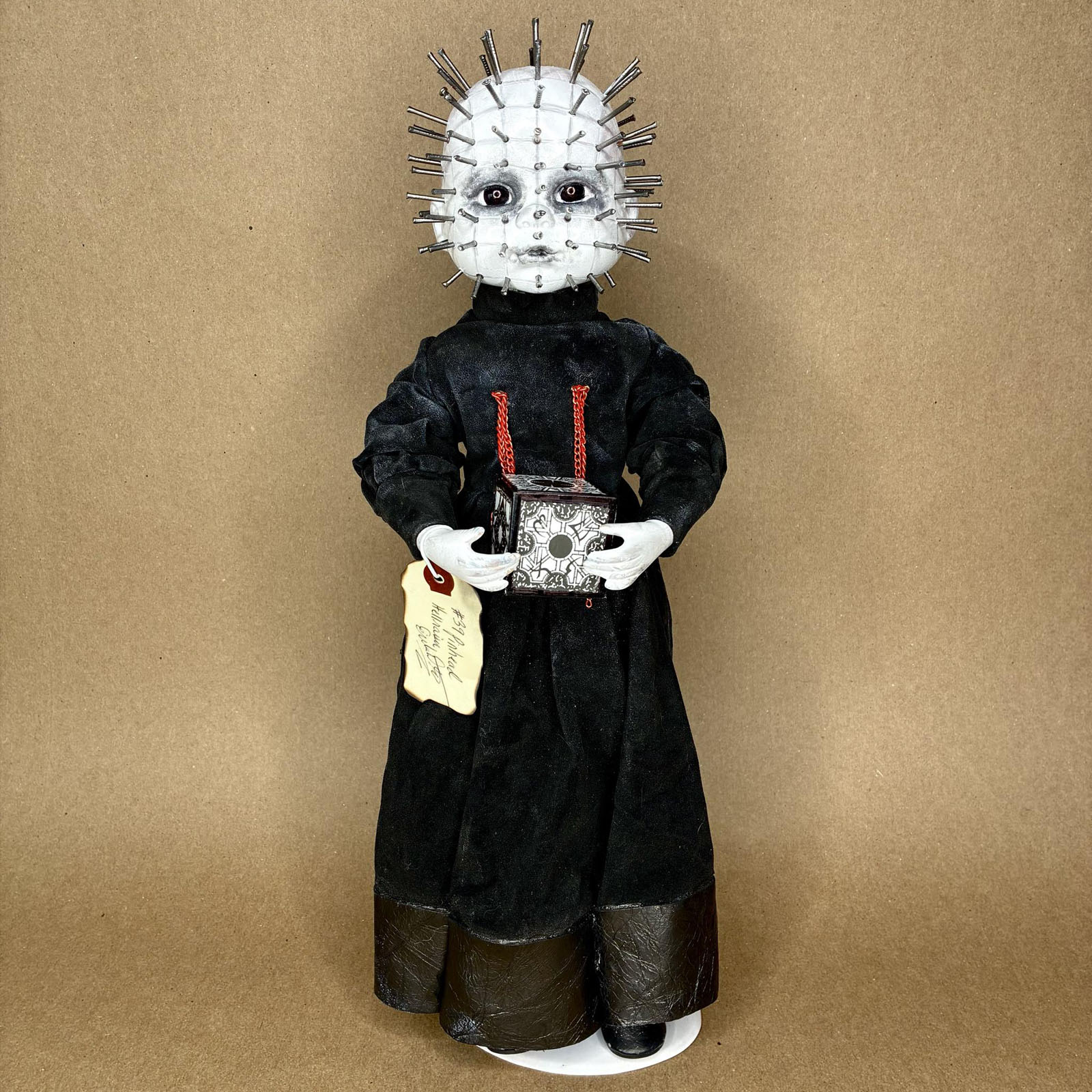 Doll #39 Hellraiser "Pinhead" Handmade Horror Doll by Erika's Emporium. This haunting handmade Pinhead doll features real pins embedded in the head and comes with a handmade Lament Configuration box. Signed and numbered #39, crafted from recycled materials and completely one of a kind.