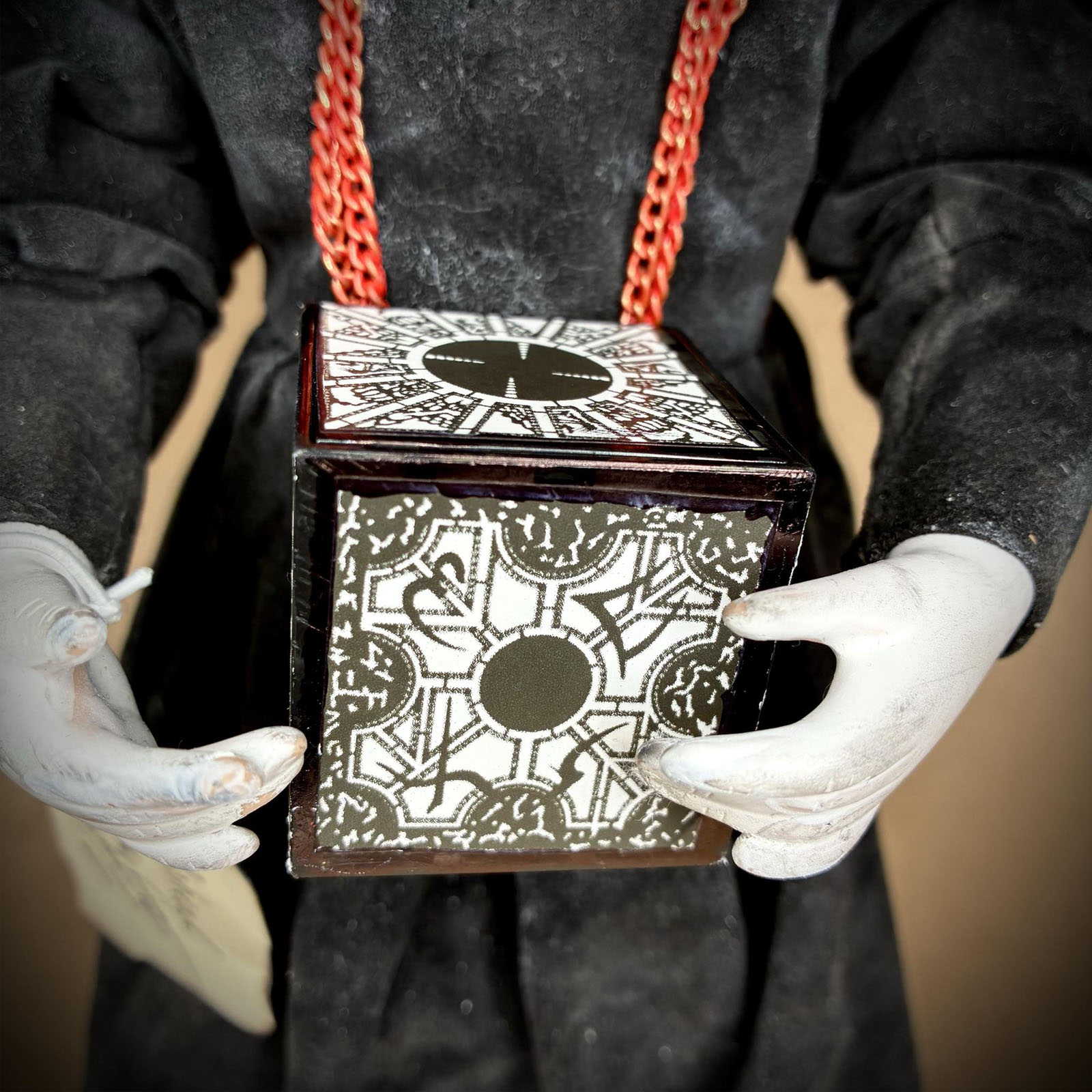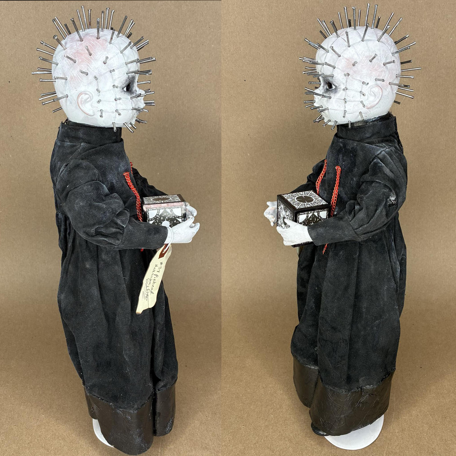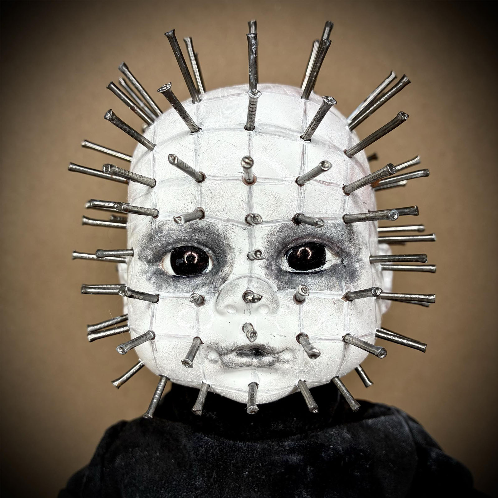 Doll #39 Hellraiser "Pinhead" Handmade Horror Doll by Erika's Emporium. This haunting handmade Pinhead doll features real pins embedded in the head and comes with a handmade Lament Configuration box. Signed and numbered #39, crafted from recycled materials and completely one of a kind.